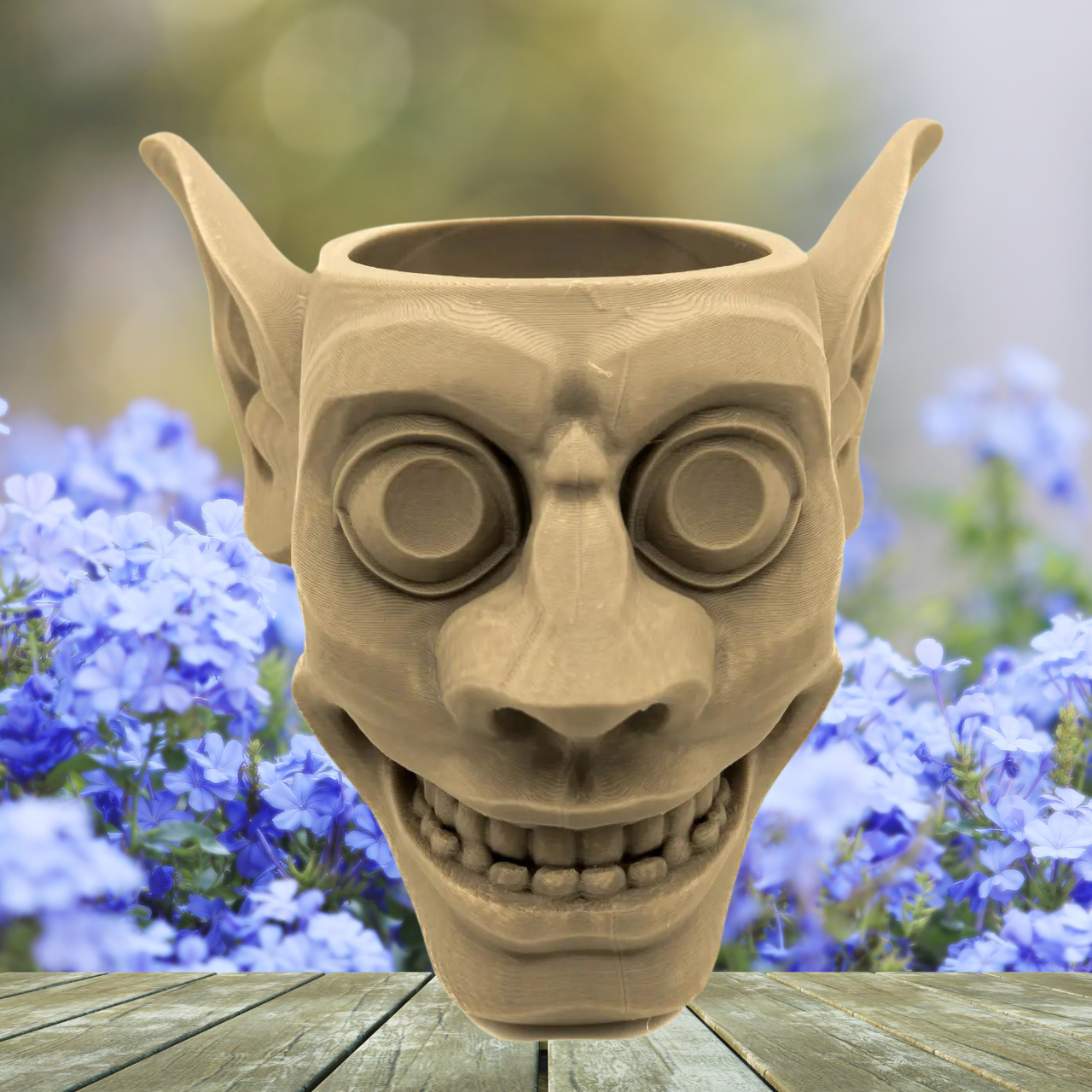 Декоративне кашпо для квітів "Goblin" є незвичайним і стильним елементом інтер'єру, який вносить особливу атмосферу в будь-яке приміщення. Його форма, виконана у вигляді голови гобліна, робить його привабливим аксесуаром для дому чи офісу.